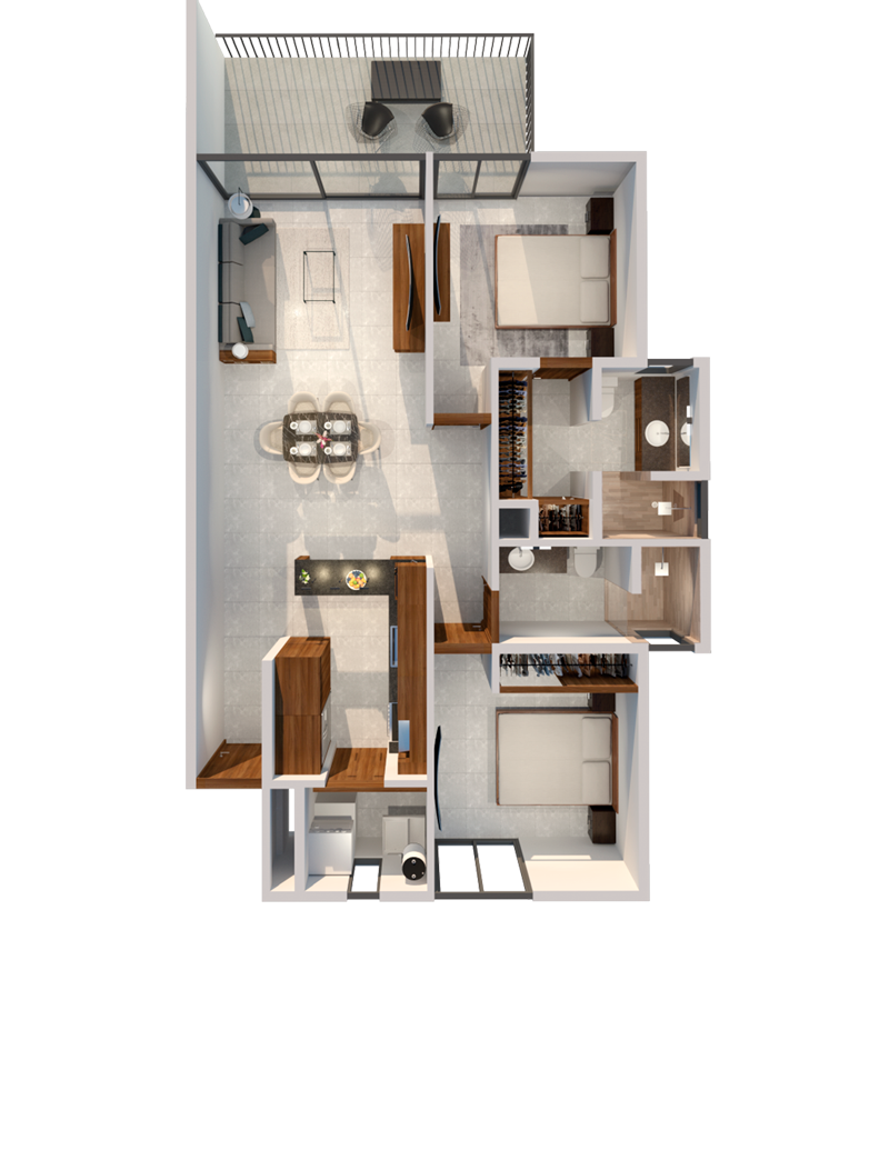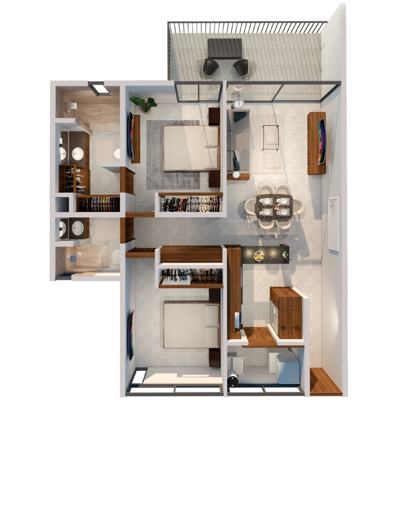 Nuestros departamentos están pensados para que disfrutes esos momentos cotidianos que hacen la vida más tuya: la luz que entra por la ventana, una taza de café frente al horizonte, el silencio que se cuela entre cada torre de la Zona Zénic.